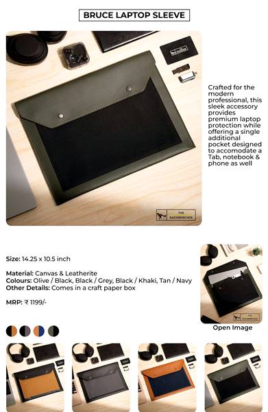 The Backbencher Bruce Laptop Sleeve combines style with protection, ideal for bulk gifting. Perfect for wholesalers and laptop accessory dealers. Sleek design with premium finish. A great option for tech gifting and corporate giveaways.
