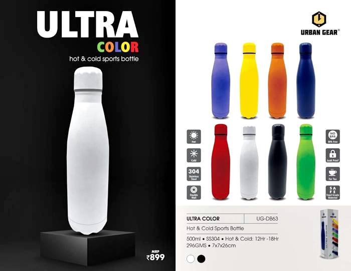 • The ULTRA COLOR Hot & Cold Sports Bottle features vibrant, fade-resistant colors with double-wall vacuum insulation.