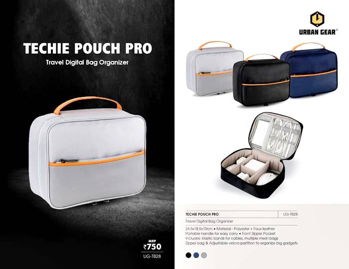 • The TECHIE POUCH PRO offers advanced organization with multiple padded compartments for laptops, tablets, and accessories.