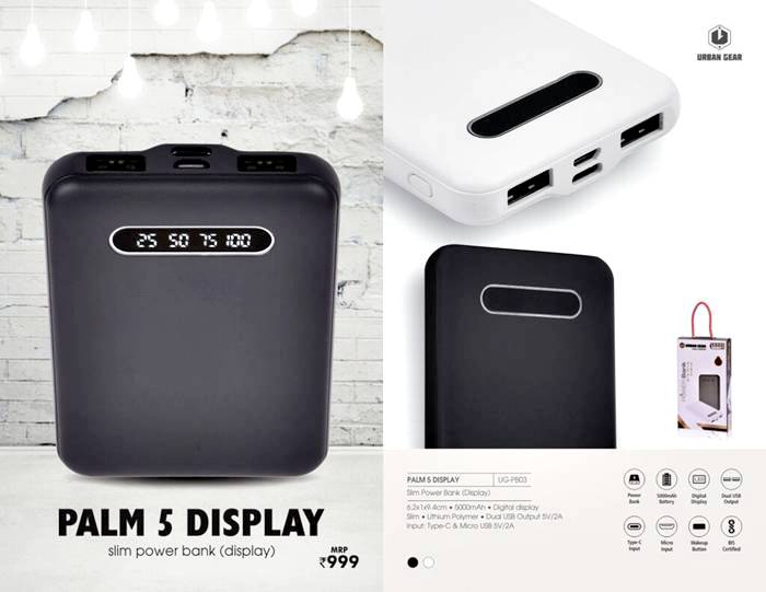 • The Urban Gear PALM 5 Slim Power Bank is designed for portability with a 5,000mAh battery capacity.